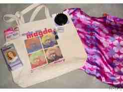 Promotional Kit Unique promotional kit distributed to promote the movie which focuses on Mary's neighbor Magda. Includes a "Make Me Magda" tote bag, false eyelashes, hair curlers, silver eye shadow, red lipstick and brown face powder. Also included is a polyester house dress in shades of pink and purple |
