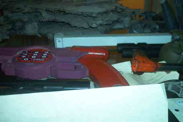 A closeup picture of my gun from Robocop the TV series, and the "Hawk" gun used by the main character in the 84 movie Ice Pirates. |