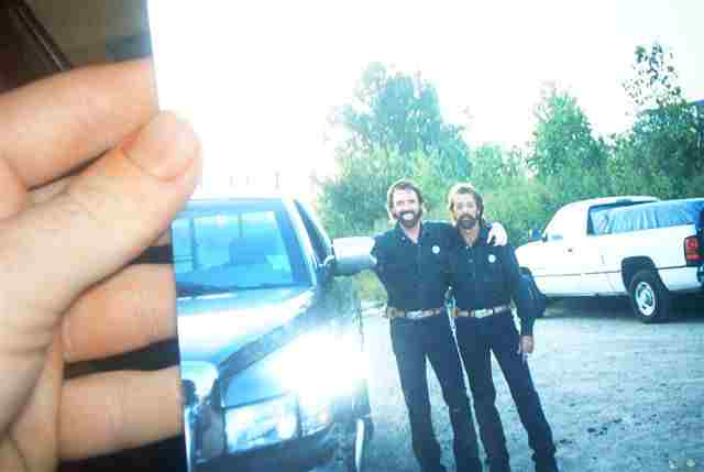 A picture of Chuck Norris and his stunt double Ron Norris (not related) |