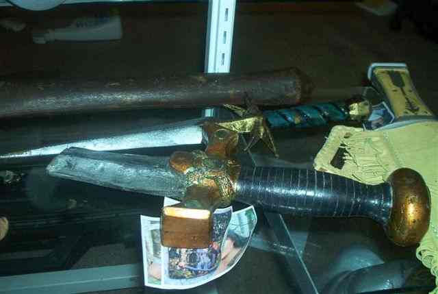 Below are a broken Resin Xena sword, a dagger used by the archangel Michael in Xena, and a knife used by Sully on Dr Quinn Medicine Woman. |
