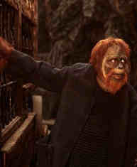 Limbo is a trader of human slaves. Limbo is cheap and shrewd in business practices. When negotiating the price for a newly captured group of humans, he jokes of the humans having lice. Limbo figures he will have to make his money on volume selling with such poor specimens. As a creature of wit, Limbo creates a variety of interesting one liners for the movie. When new humans arrive at his training compound he instructs his gorilla guards to "Get them out and get them clean." If only his assistant would remember to where his gloves will dealing with humans sanitation conditions woud be better. Limbo gives a human child to General Thade as a gift for Thade's nephew. Such a kickback to someone in power is a cost of doing business to Limbo. When captured by escaping humans, Limbo learns what it is like to be a slave and to be human. By the movie's end Limbo ponders a future world of trade with humans as he is eager to profit from any situation. He is the proverbial entrepreneur and Rockefeller or J.P. Morgan of his world. |
