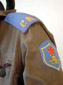 The flight suit pictured above was utilized in Rambo III by Russian troops. Rambo III was the film where John Rambo drives a tank into a helicopter and fights with Afghan guerillas against well equiped Russian troops wearing uniforms like this. The costume features a shoulder patch with "CA" the Russian acronymn used often to denote things Soviet just like the United States uses the acronymn "US." On the side of each arm the costume features a Russian style military patch. This piece zips up and requires a bit of maneuvering to get into. *Also see this site's Red Dawn Merchandise page for pictures of a Russian dress uniform from Red Dawn, a prop Russian AK-47, a rocket launcher blueprint and info about collecting Soviet military memorabilia. |