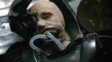 Stomach Bomb Removed This big guy is the very first inmate to agree to have his implanted explosive removed. He curses in a most humorous manner as his explosive is basically torn from his stomach. In a way this memorable removal scene is similar to Arnold Schwarzenegger's Total Recall nasal implant removal. |