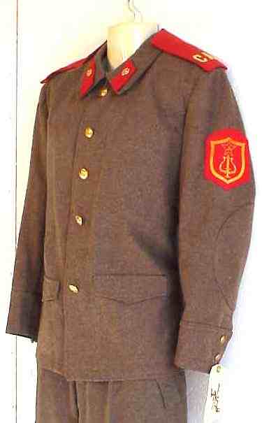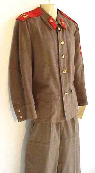 unique collectible item reminiscent of the Cold War. The Uniform featured below was constructed from modifed German military surplus. Both of the shoulder tops feature "CA" a Russian acronymn. The side of one arm features a marksman related badge and the front of the uniform top has gold stars. The shoulder tops and patch were custom made for the film. |