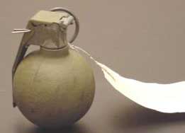 This is a real metal baseball grenade used in the movie Platoon. It is of course deactivated with no chemicals inside it any more.